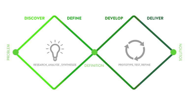 We employed a Double Diamond Design Thinking Framework which included the phases: